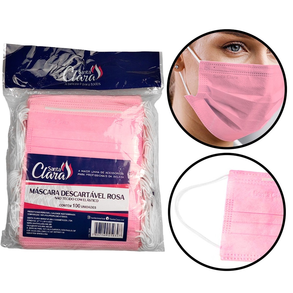 Máscara Facial Descartável Com Elástico Rosa 50 Unidades